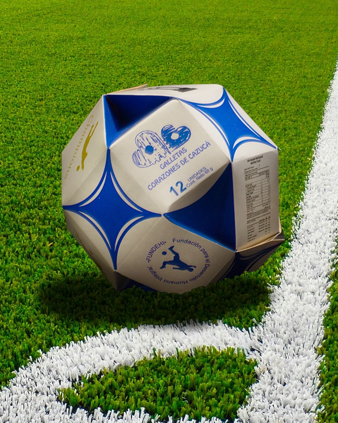 Caja balón futbol, ideal para diferentes eventos o detalles contiene 12 deliciosas galletas de 5 g sabor a elección (Naranja, Maracuyá, Coco, Vainilla)