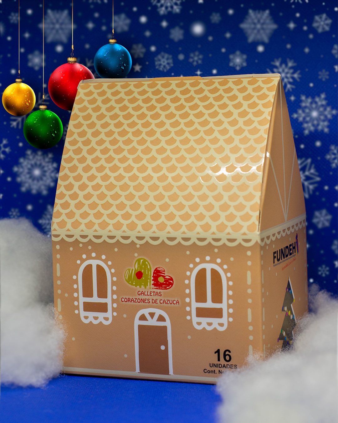 Caja motivo navideño de 16 unidades con galletas de chips de chocolate.